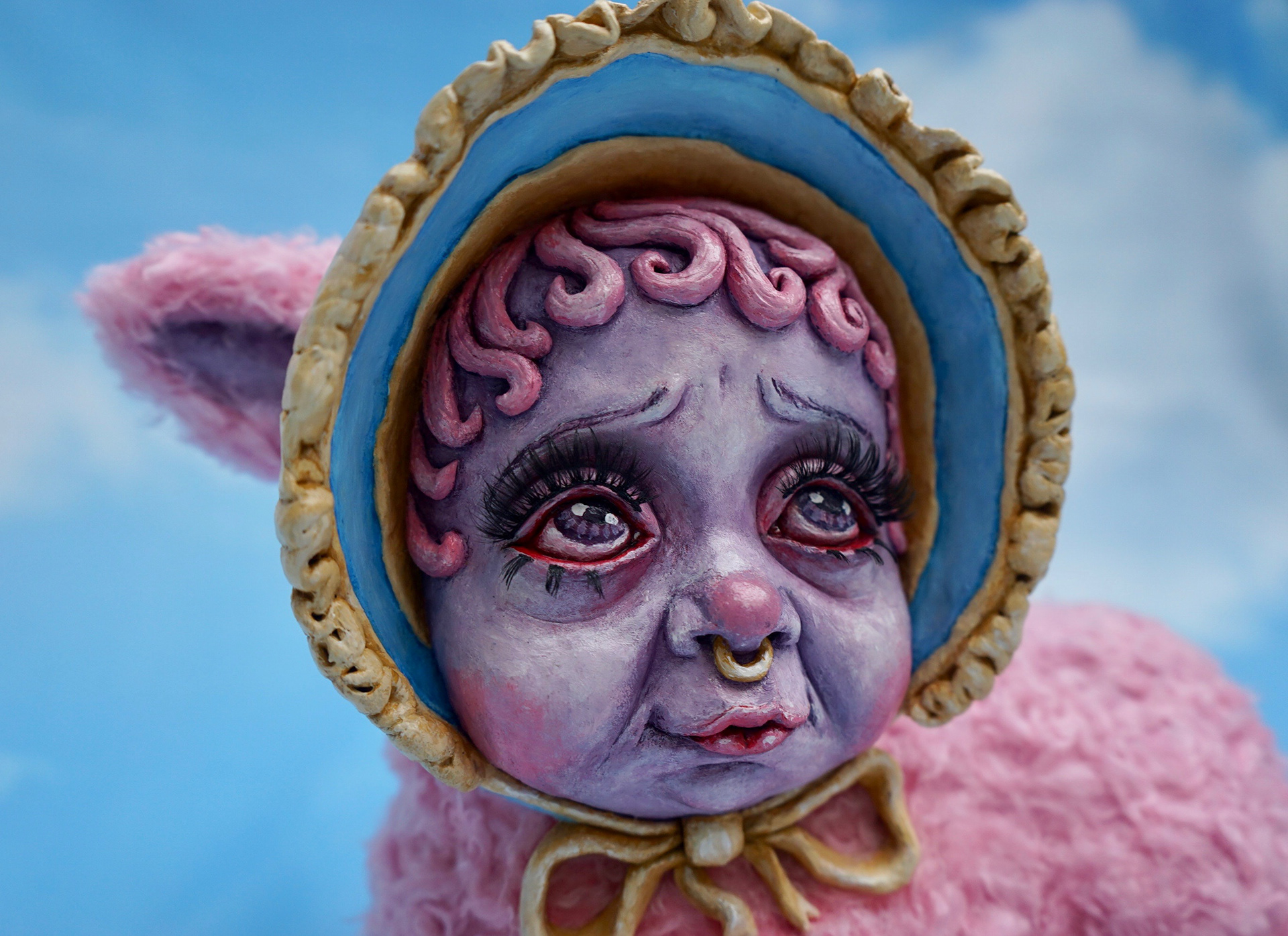 'Lila', 2026, polymer clay, acrylic and faux fur, 23 x 18 x 26cm